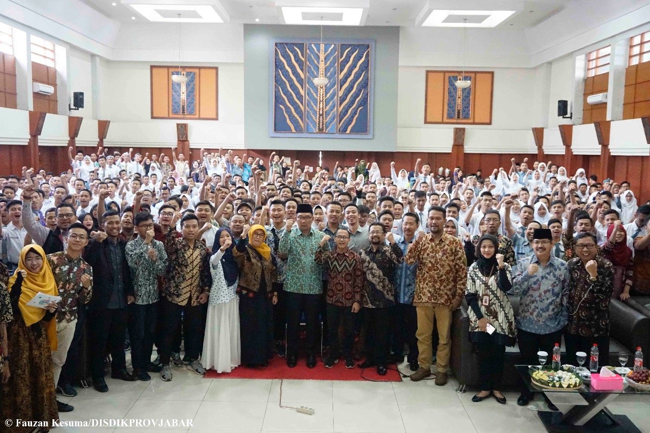 SUARA JABAR SATU.COM | BANDUNG, DISDIK JABAR – Sebanyak 300 siswa menghadiri acara peringatan hari jadi Forum OSIS Jawa Barat (FOJB) yang ke 6 di Aula Ki Hajar Dewantara, Kantor Dinas Pendidikan Jawa Barat, Jalan Radjiman nomor 6, Kota Bandung, Sabtu, (5/1/2019). 300 siswa tesebut terdiri dari perwakilan ketua dan pengurus OSIS di 27 kabupaten kota. Acara tersebut dihadiri oleh Gubernur Jawa Barat, Ridwan Kamil, Kepala Dinas Pendidikan Jawa Barat, Dewi Sartika, Sekretaris Dinas Pendidikan, Firman Adam, Kepala Bidang Pembinaan Sekolah Menengah Kejuruan, Dodin R Nuryadin dan Kepala Cabang Dinas Pendidikan Wilayah VII, Husen Hasan Rahadian.