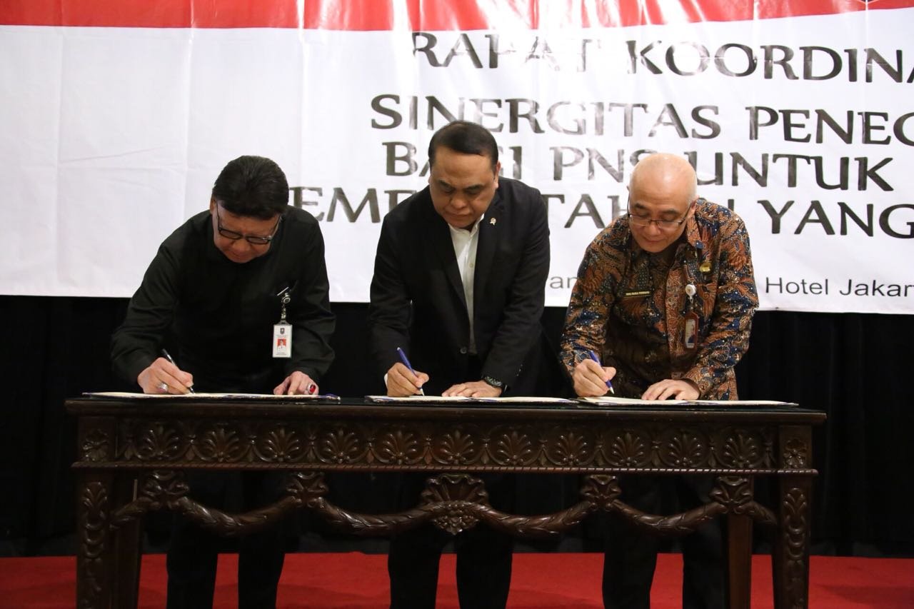 Pada kesempatan tersebut juga dilaksanakan penandatanganan Surat Keputusan Bersama (SKB) antara Mendagri, Menteri PAN RB dan Kepala BKN terkait penegakan hukum terhadap PNS yang telah dijatuhi hukuman berdasarkan putusan pengadilan yang berkekuatan hukum tetap karena melakukan tindak pidana kejahatan jabatan atau tindak pidana kejahatan yang ada hubungannya dengan jabatan.