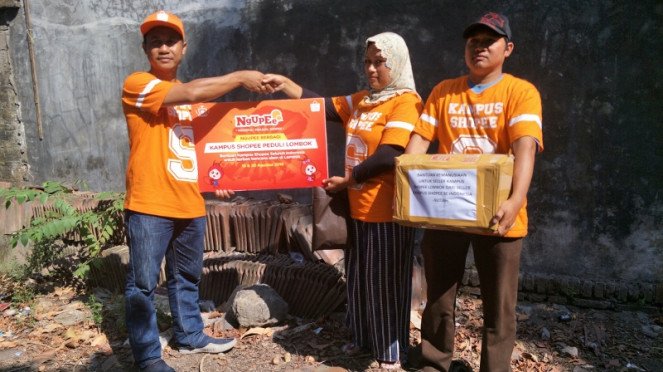 Gempa di Lombok juga menyatukan kepedulian dari seluruh penjual di Shopee yang tergabung dalam komunitas Kampus Shopee yang berasal dari 29 kota di Indonesia. Mereka berinisiatif untuk memberikan bantuan pada penjual Shopee yang terdampak gempa, seperti selimut, pakaian, pampers, juga kebutuhan lainnya.