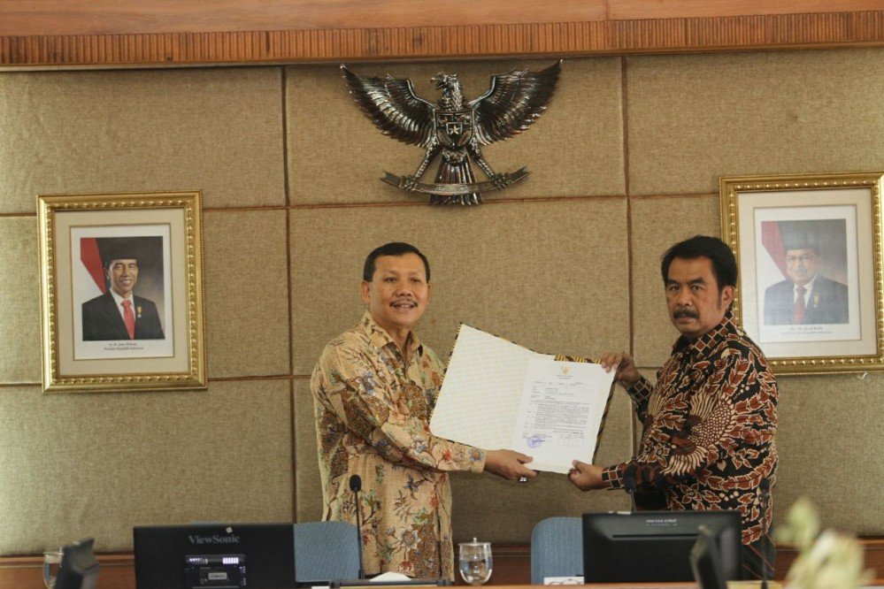 Penetapan Dadang Supriatna sebagai Plh. Wali Kota Bandung ditandai dengan penyerahan Formulir Berita dari Sekretaris Daerah Provinsi Jawa Barat, Iwa Karniwa mewakili Gubernur Jawa Barat kepada Dadang Supriatna di Gedung Sate, Jalan Diponegoro, Minggu (16/9/2018).