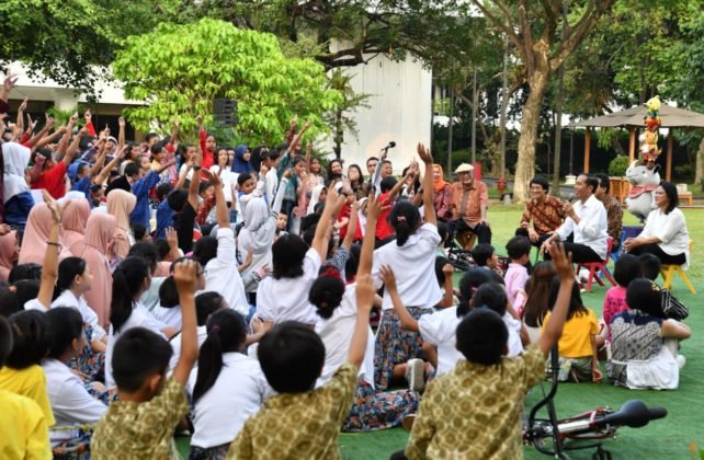 SUARA JABAR SATU.COM | JAKARTA – Jarum jam menujukkan pukul 16.00 WIB sore itu, halaman tengah Kompleks Istana Kepresidenan Jakarta penuh canda tawa anak-anak dari seluruh daerah. Anak-anak sibuk mencoba berbagai alat musik dan mainan tradisional, seperti angklung dan conglak. Sebuah panggung kecil diramaikan oleh penyanyi anak berduet dengan penyanyi ternama Indonesia seperti Glenn Fredly dan RAN. Semua anak tertawa gembira, namun senyum paling sumringah tampak jelas dari bibir Salma.
