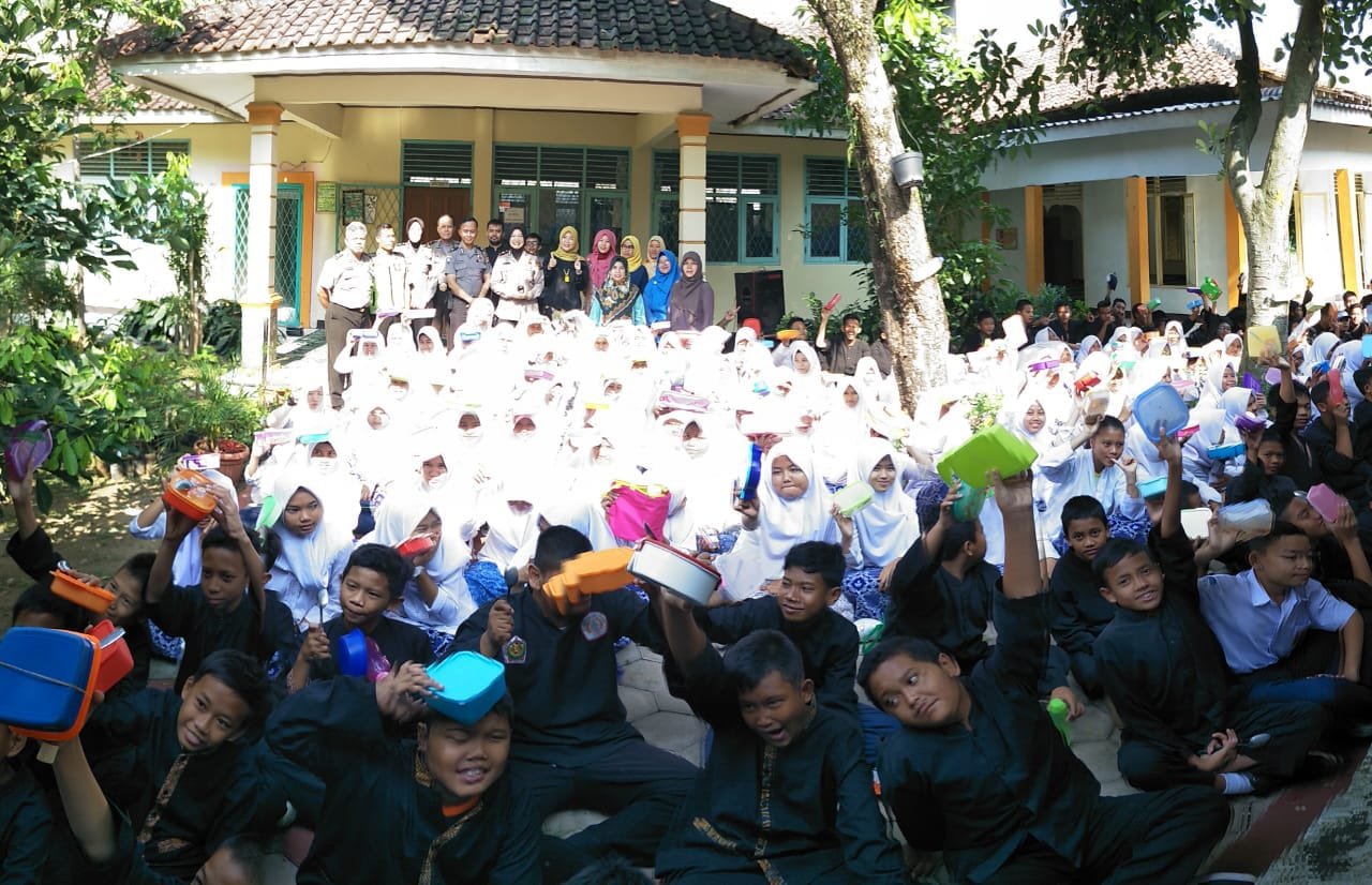 Usai memberikan penyuluhan, AKP Aryani dan jajaran Disdik Kota Bogor, Kepala SMP Bina Greha serta para tenaga pendidik turut serta makan bersama dengan para siswa sebagai implementasi dari instruksi Dinas Pendidikan tentang program pola hidup sehat dengan membawa makan dan minum dari rumah.