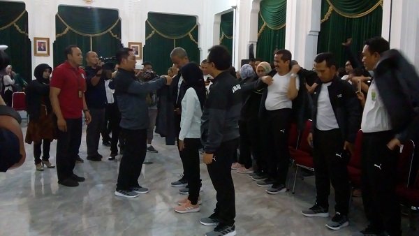 SUARAJABARSATU.COM | BANDUNG – Gubernur Jabar Ridwan Kamil meminta para atlet Pornas Jabar mempertahankan gelar juara umum Jabar dalam Pekan Olahraga Korpri Nasional XV di Pangkal Pinang November mendatang. Harapan itu diungkapkan Ridwan Kamil saat mengukuhkan kontingan Pornas Jabar di Gedung Sate, Selasa sore (29/10/2019)