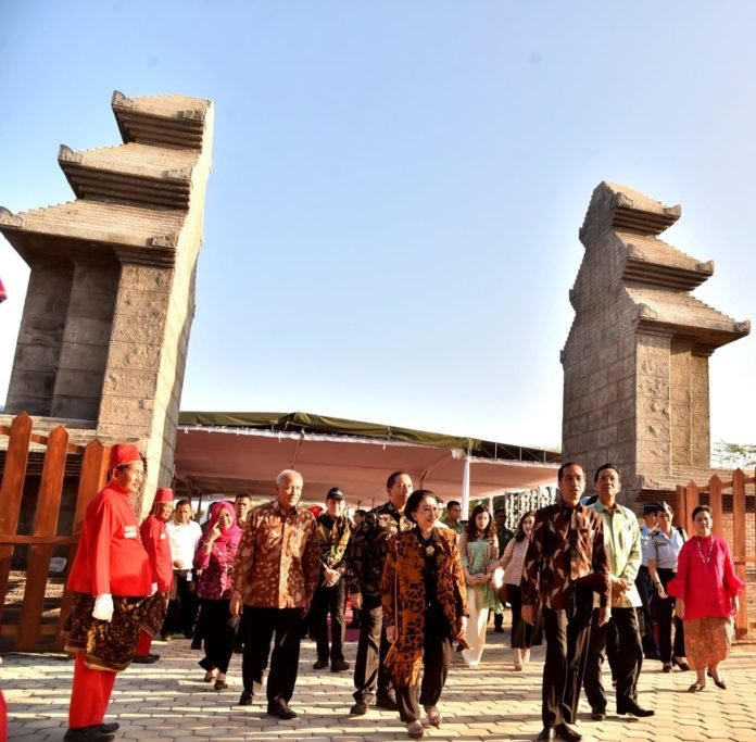Suara Jabar Satu.com | Presiden Joko Widodo dalam kunjungan kerjanya ke Daerah Istimewa Yogyakarta hadir dalam acara penyerahan aset bangunan dan studio alam yang menjadi lokasi pengambilan gambar film Sultan Agung kepada pemerintah. Studio tersebut berlokasi di Desa Gamplong, Kabupaten Sleman.