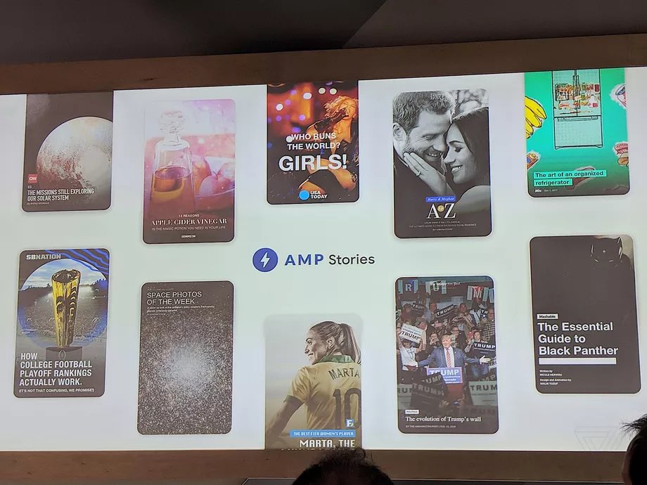 Google juga menggunakan visi komputer untuk menambah pencarian menjadi lebih visual dengan format baru bernama Stories, yang berasal dari AMP standard.