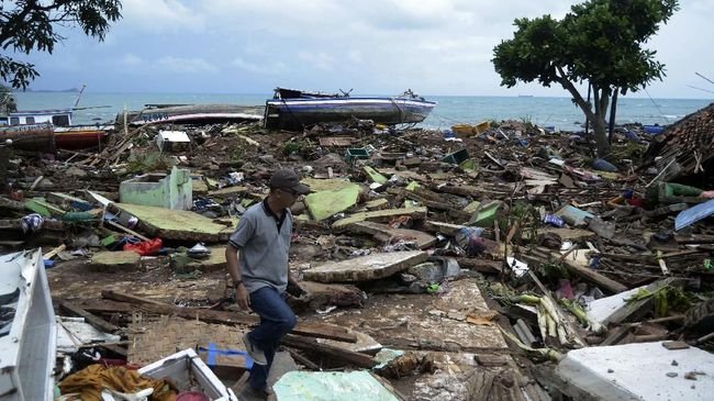 “Suara gemuruh itu sangat jelas. Banyak orang lari teriak ‘tsunami-tsunami. Mereka lari ke arah Gunung Rajabasa. Saya keluar, bawa semua keluarga, ikut lari ke bukit,” ujar dia, Senin (24/12).