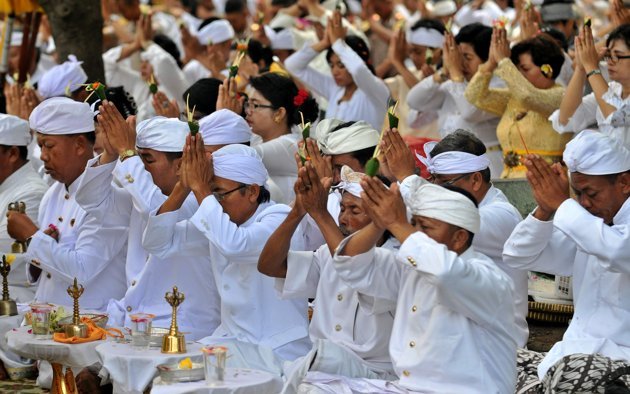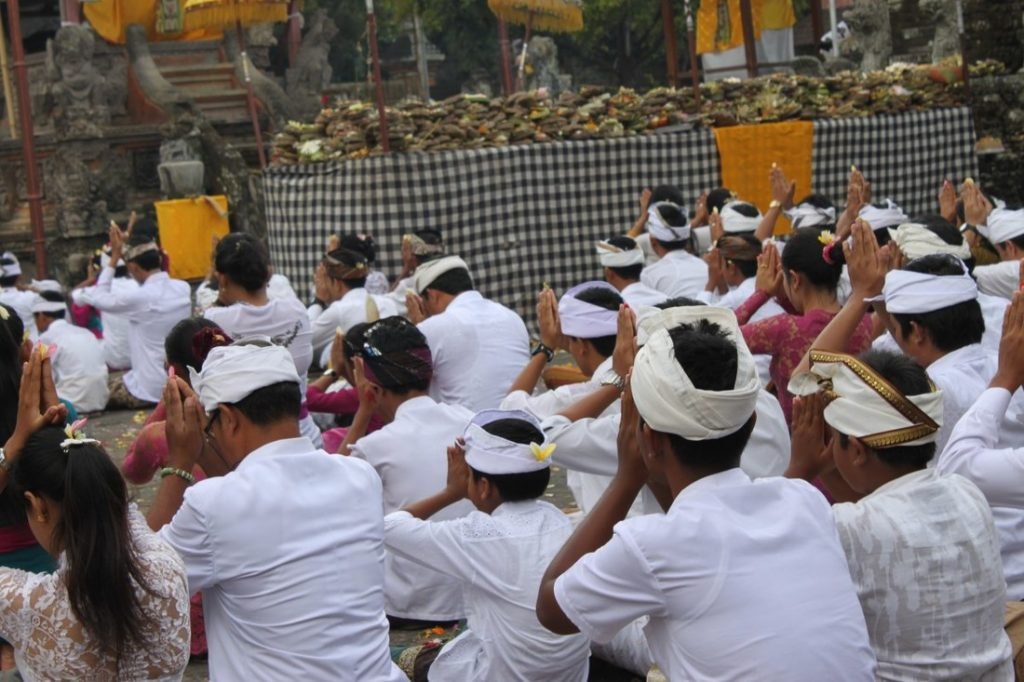 Bersembahyang di Bali Agung atau Pura Desa di setiap desa pakraman, setelah kembali dari mekiyis.