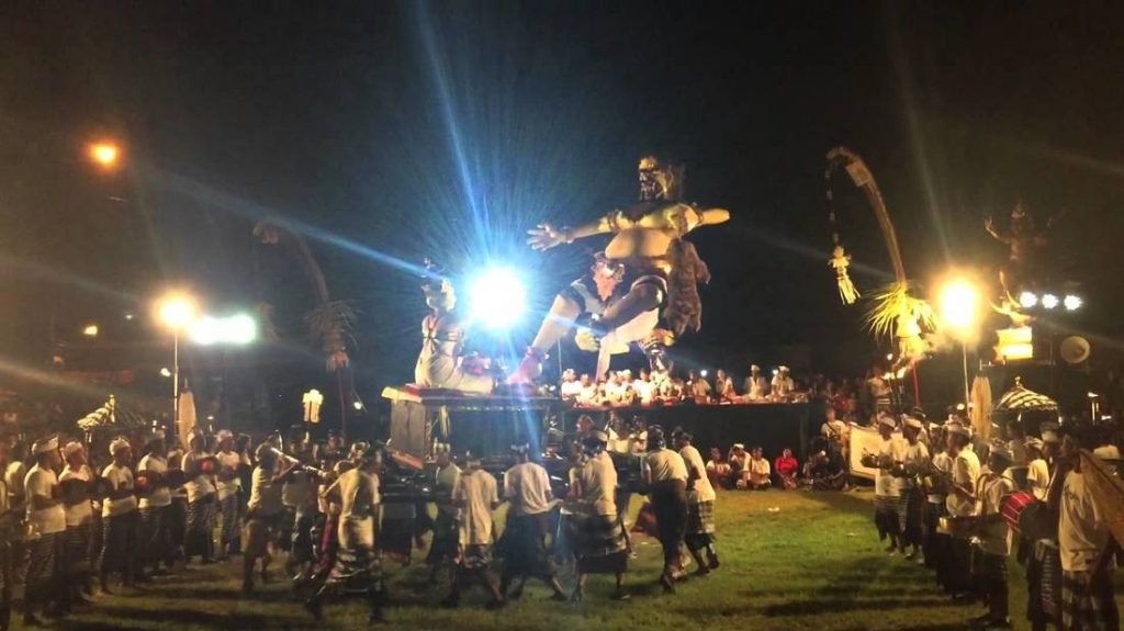 Dilanjutkan pula dengan acara ngerupuk/mebuu-buu disetiap rumah tangga, guna membersihkan lingkungan dari pengaruh bhuta kala. Belakangan cara ngerupuk disertai juga dengan “ogoh-ogoh” (simbol bhuta kala) sebagai kreativitas seni dan gelar budaya serta simbolisasi bhuta kala yang akan disomyakan.