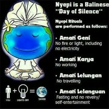 Bila kalian yang tinggal di Bali atau pernah berliburan di Bali saat Nyepi, pasti akan merasakan bagaimana suasananya yang tidak akan pernah kalian temuakan di kota lain di Indonesia. Nyepi identik dengan suasana sepi dan gelap gulita di malam hari. Tidak ada aktivitas seperti biasa. Semua kegiatan ditiadakan, termasuk pelayanan umum, seperti Bandara Internasional Ngurai Rai dan Pelabuhan Gilimanuk pun ditutup, namun tidak untuk rumah sakit.