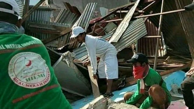 Dari video yang dikutip dari akun Twitter resmi FPI, @informasi_FPI, tampak terlihat sejumlah relawan FPI dengan tangan kosong tanpa alat coba mencari jenazah korban gempa.
