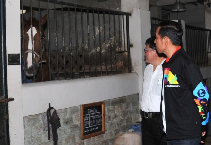 Hal itu sebagaimana terlihat saat Presiden mengunjungi Pelatnas berkuda (equestrian) di Arthayasa Stable, Limo, Kota Depok, Jawa Barat, pada Minggu, 6 Mei 2018.
