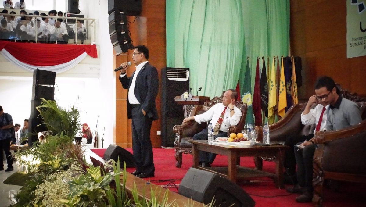 Untuk itu di tengah mahasiswa yang antusias alumnus S-3 Universitas Indonesia 2014 ini mengajak agar mereka berani menghadapi tantangan melalui kolaborasi. antara pemerintah, masyarakat, dan pelaku usaha.