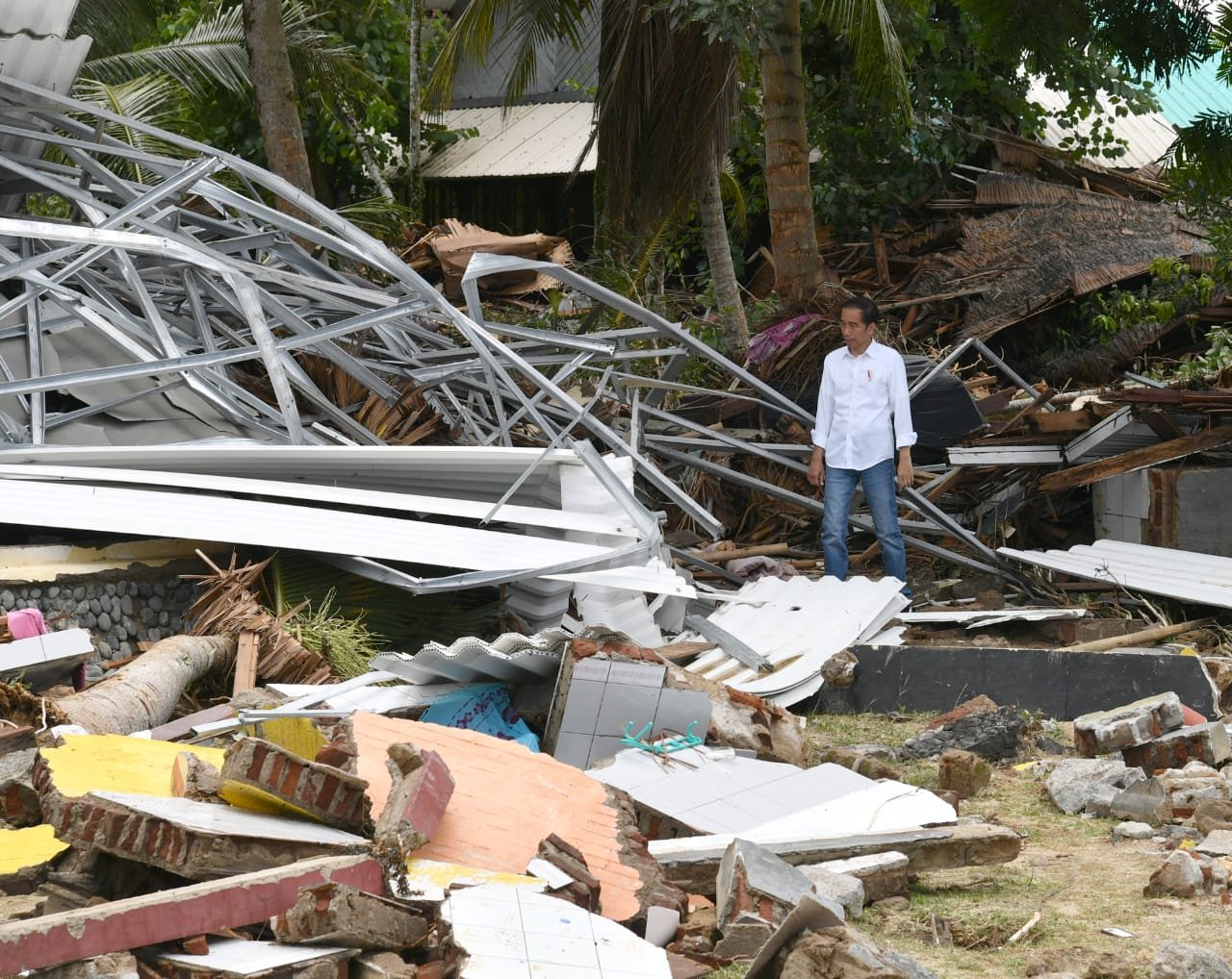 Lokasi ini jadi titik terakhir yang sebelumnya rusak tersapu terjangan tsunami. Sepanjang perjalanan menuju lokasi, Presiden tampak serius mendengar penjelasan dan laporan mengenai situasi di sekitar wilayah terdampak.