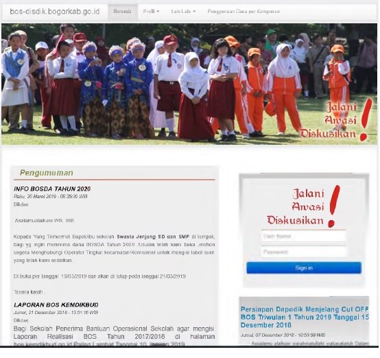 Sebagai bentuk perhatian dari Pemerintah Kabupaten Bogor, dalam hal ini Dinas Pendidikan mengadakan program