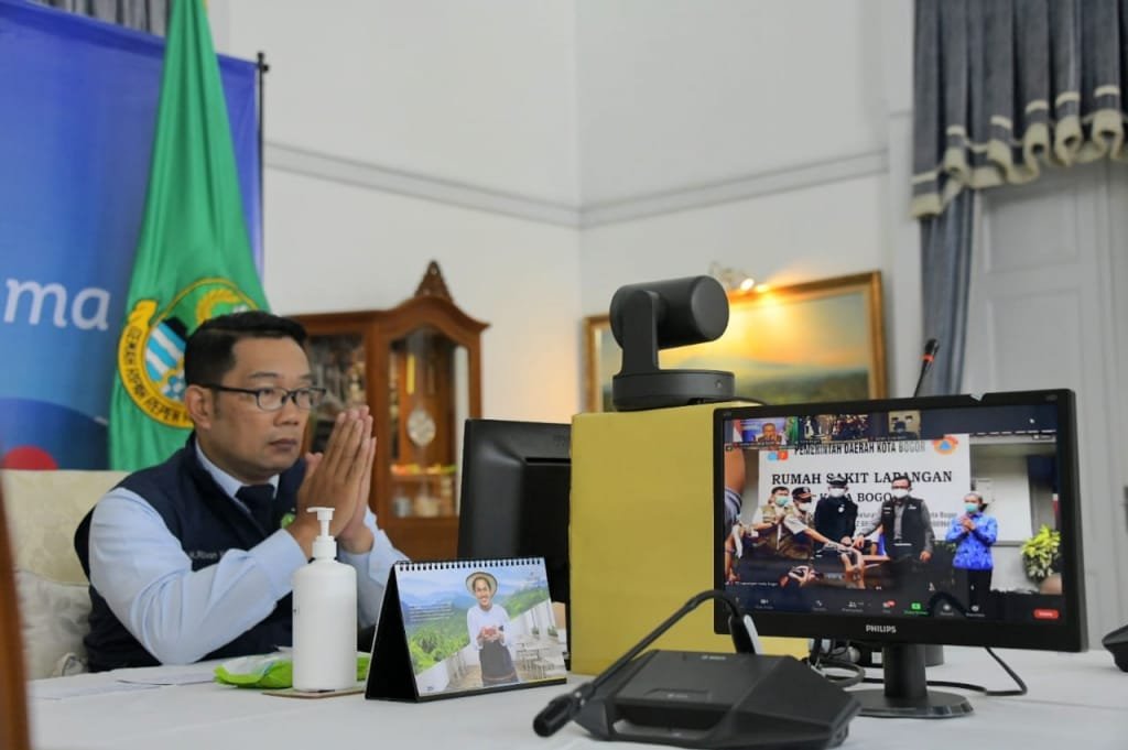 SUARAJABARSATU.COM | KOTA BANDUNG – Gubernur Jawa Barat (Jabar) Ridwan Kamil memberikan sambutan dalam acara Peresmian Rumah Sakit Lapangan COVID-19 Kota Bogor via konferensi video dari Gedung Pakuan, Kota Bandung, Senin (18/1/2021).