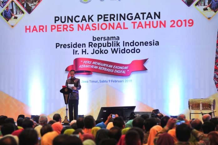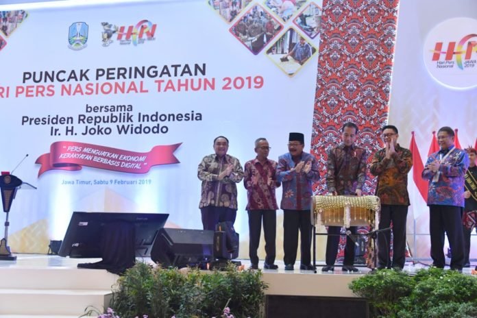 “Di tengah suasana seperti ini, saudara-saudara insan media arus utama, justru sangat dibutuhkan menjadi rumah penjernih informasi, dibutuhkan untuk menyajikan informasi yang terverifikasi, dan dibutuhkan untuk menjalankan peran sebagai communication of hope, dibutuhkan untuk memberi harapan kepada bangsa,” ucap Presiden Joko Widodo ketika memberikan sambutan pada Puncak Peringatan Hari Pers Nasional Tahun 2019 di Grand City Convention and Exhibition Hall, Kota Surabaya, Provinsi Jawa Timur, pada Sabtu, 9 Februari 2019.