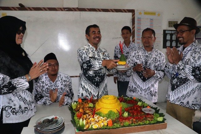 Pelaksanaan Peringatan Hari Guru Nasional berjalan lancar walau sedikit diterpa hujan, acara ditutup dan diakhiri dengan Potong tumpeng bersama sebagai tanda syukur.