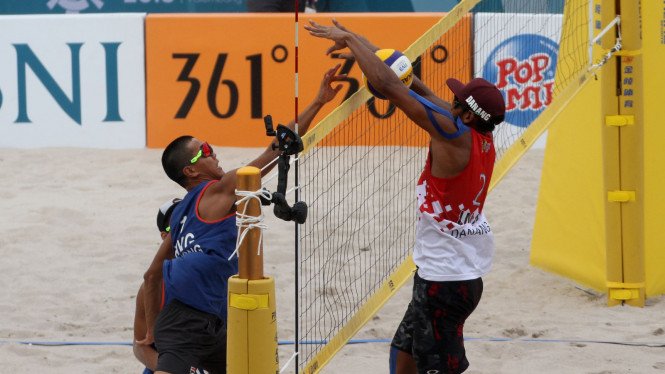 Gilang/Danang lebih dulu mengunci tiket semifinal usai mengalahkan Nouh Rashid Said Al Jalbubi/Mazin Sulaiman Zahran Al Hashmi asal Oman. Dengan begitu, tim voli pantai putra sudah memastikan satu tiket ke babak final.(viva.co.id) hdr.-