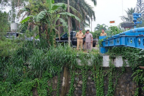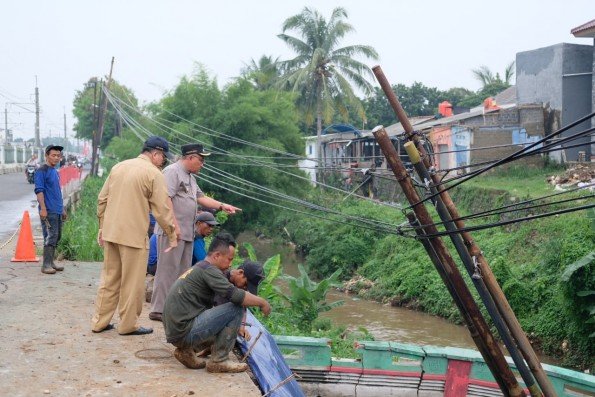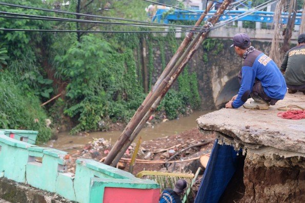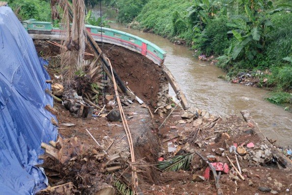 Untuk sementara Pemkot Depok akan memasang bronjong untuk mengantisipasi meluasnya area longsor./depok.go.id/ratu