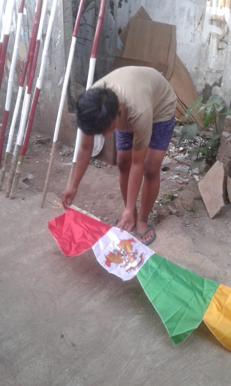 Seperti Ila warga Citayem Depok (22), di sini warga bergotong royong memasang bendera sang merah putih, mulai dari ibu, bapak hingga anak-anak pun ikut membantu memeriahkan pemasangan sang merah putih